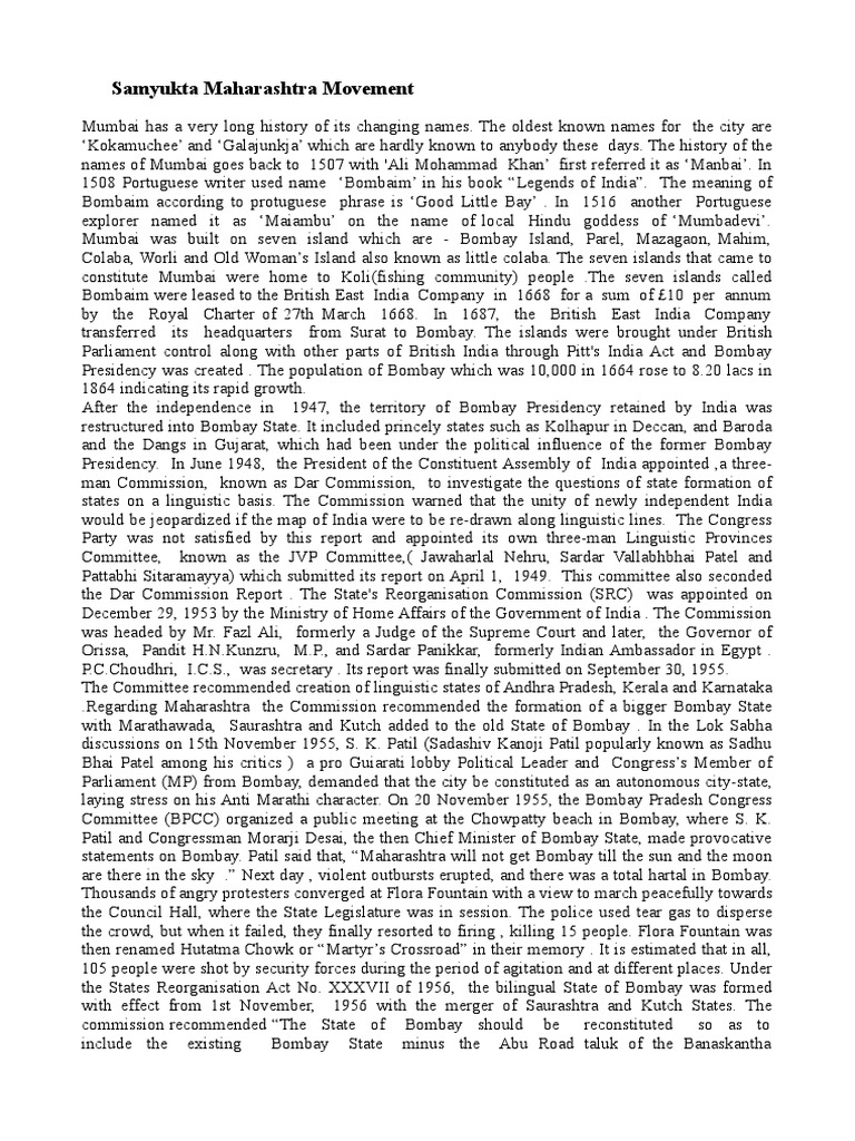 Samyukta Maharashtra Movement Samyukta maharashtra movement on wn network delivers the latest videos and editable pages for news & events, including entertainment, music, sports, science and more, sign up and share your playlists.